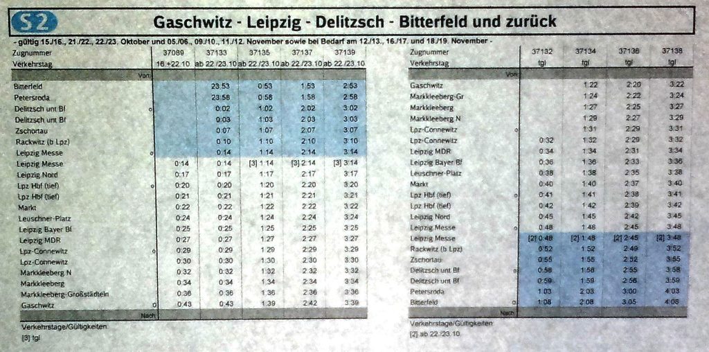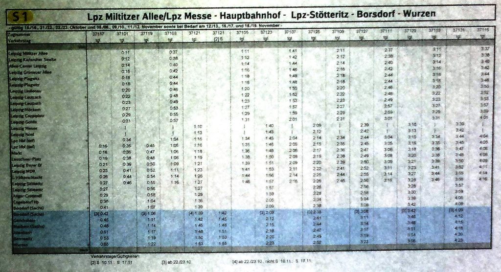 Jeder, der wie ich die Enstehung des Leipziger City-Tunnel etwas verfolgt hat, wusste davon, das in den ruhigeheren Nachtphasen, also wenn auf den Bahnstrecken weniger los ist, Eprobungsfahrten durch den CityTunnel durchgeführt werden. Auch war mir von Anfang an klar, das man dazu einen Plan (= Fahrplan) benötigt. Denn jeder Beteiligte - sei es der Lokführer, der begleitende Techniker oder auch der verantwortliche Fahrdienstleiter - muss ja die Abläufe und Zeiten kennen und entsprechend mitarbeiten.