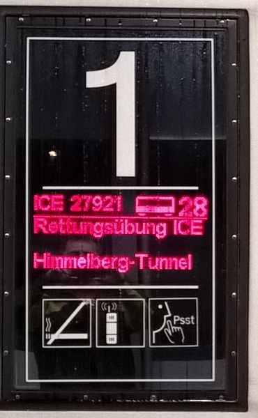 In der Nacht vom 28. auf den 29. Oktober 2017 fand auf der Schnellfahrstrecke Köln-Rhein/Main (Streckennummer 2690) in Höhe Montabaur (ca. km 90,0) eine Rettungsübung an einem "havarierten ICE" im Tunnel Himmelberg statt.